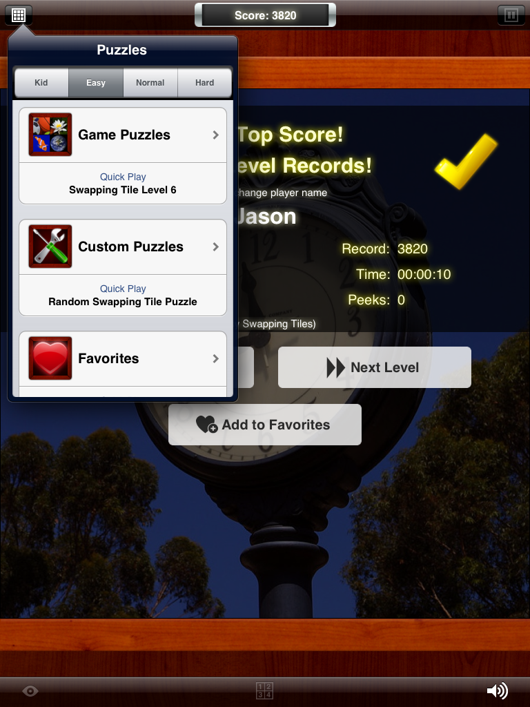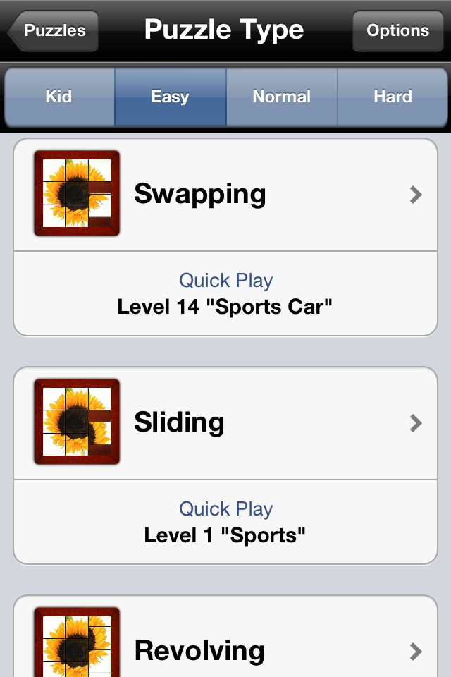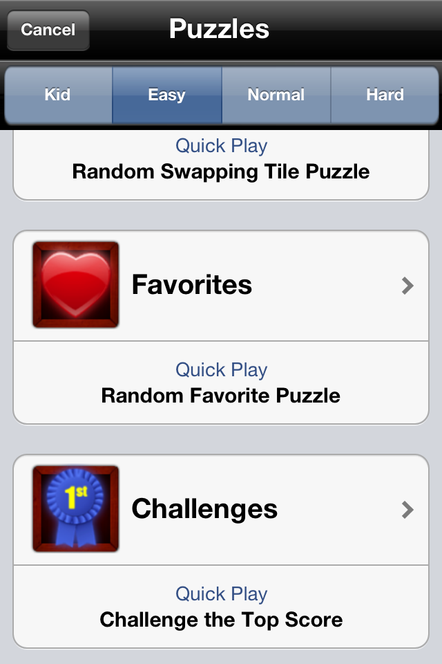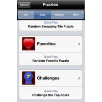Tap Quick Play buttons to quickly play a randomly generated puzzle using any of the gorgeous built-in pictures.
