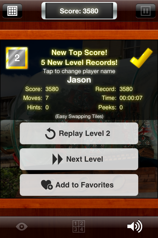 4 levels of difficulty, 3 types of puzzles, and 40 high quality photos themed into 8 level chapters, providing 480 combined levels of gameplay.